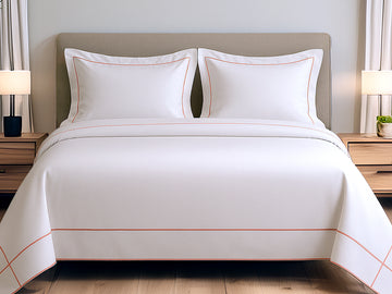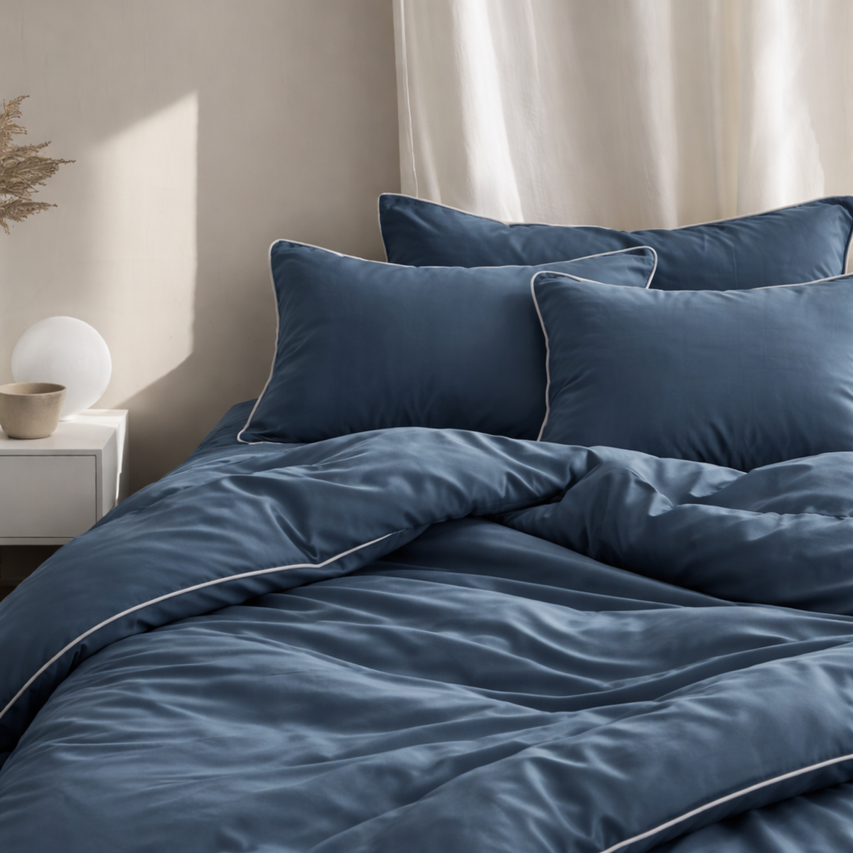 Our Percale offers a matte, crisp hand-feel — ideal for warm sleepers who love a cool, fresh finish. Our Sateen weave creates a buttery-soft, luminous drape with a slight sheen — the epitome of understated luxury.